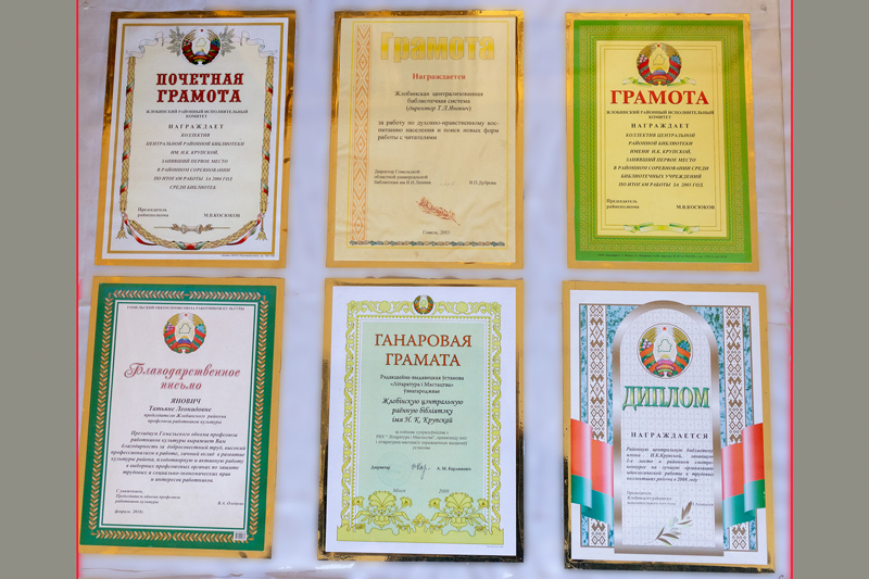 Жлобинская районная центральная библиотека имени Н.К.Крупской награждена Почетной грамотой и ценным подарком редакционно-издательским учреждением «Літаратура і мастацтва» - за пропаганду книг и литературно- художественных изданий, за плодотворное сотрудничество с издательством.